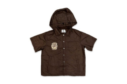 Saint Vanity Nylon Button Zip Up Hooded Shirt Brown